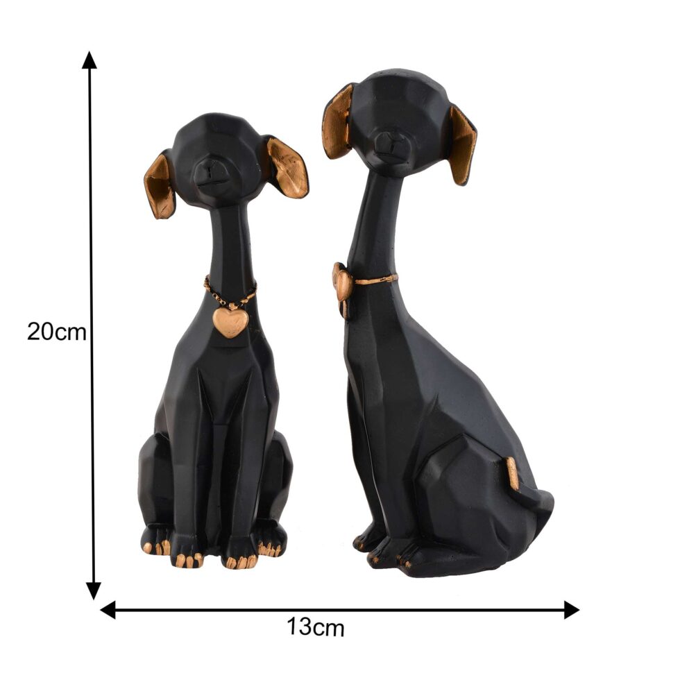 Black and Golden Set of 2 Cute Dog Statues ? Adorable Animal Figurines that elevate your home decor with their undeniable charm! These decorative showpieces are crafted to bring smiles and warmth to your space, perfect for displaying in your living room, bedroom, or even on your office desk. Whether you’re a dog lover or want to surprise someone with a thoughtful gift, these statues are a delightful choice. Celebrate birthdays, housewarmings, or simply spread joy with these lovable companions. Add a touch of whimsy and elegance to your home, and let these canine beauties brighten your surroundings in style!