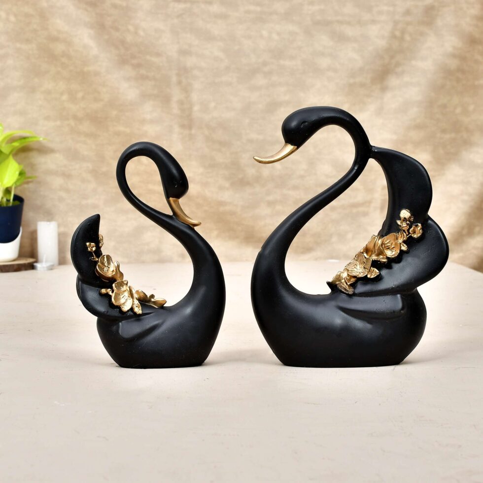 Swan Pair Feather Design Sculpture